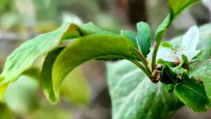 درختی که دلتنگ بهار شده 🔸به شکوفه نشستن درخت آلوچه در روزهای پایانی تابستان قمصر