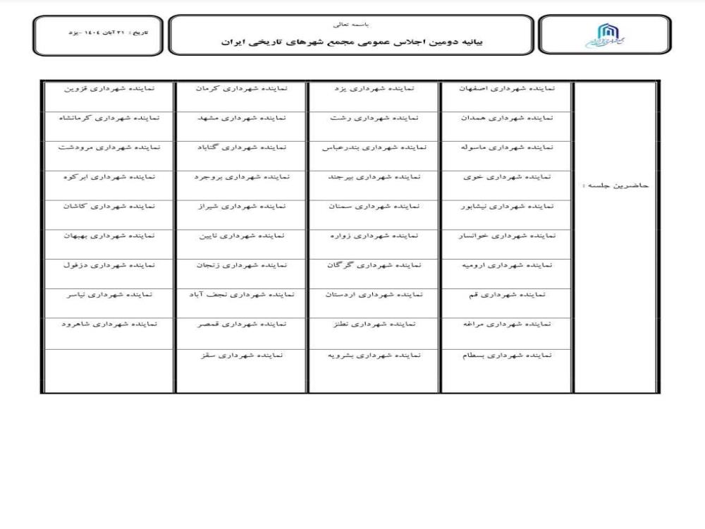 بیانیه دومین اجلاس عمومی مجمع شهرهای تاریخی ایران در یزد